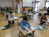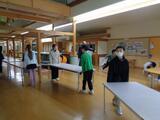 上学年は、机を出した後、4年生は机拭き