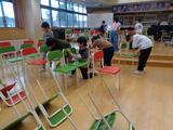下学年は、音楽室で椅子の足や裏側を雑巾で