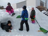 今日は、外で雪遊びをしました。雪を見て、大喜びの子供たち。子供たちみんなで協力しながらかまくらや雪だるまを作ったり、グラウンドにできた雪山でそりをしたり、雪玉を投げたり・・・。一人一人が思い思いの形で雪に触れ合いました。始業式に校長先生から話があった「親雪(しんせつ)な子供」にしっかりとなれた一日でした。また、21日のスキー学習に向けて、スキーウェアや帽子、手袋の着脱の練習にもなりました。