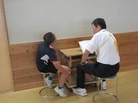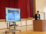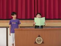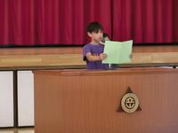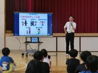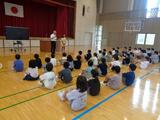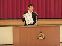 校長先生のお話です。2学期は目標をもって努力しましょうとお話されました。