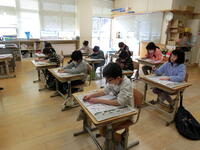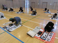 始業式の後には書初大会があり、一人一人が真剣に揮毫しました。