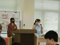 給食がどのようにしてみんなのもとへ届くのか、栄養教諭の先生や給食の準備をしてくださっている先生へのインタビューも交えながら分かりやすく伝えました。発表の後は、お二人に感謝の手紙を手渡しました。