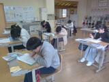 書き初め大会では、しんと静まり返った中、一筆一筆を丁寧に揮毫していました。