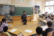 2学期の町探検では校下に住んでおられる人の「すてき」を発見します。1回目は、山岳ガイドをしておられる水間さんのお話を聞きました。山岳ガイドや植物の生態調査についてお話してもらいました。山のガイドをするために練習をたくさんしていることや危険な崖を登っていることに子供たちは驚いていました。たくさんのきれいな山の写真も見せていただきたくさんの歓声があがりました。美しい自然の中を安全に登山できるように案内しておられる水間さんの「すてき」をたくさん発見しました。
