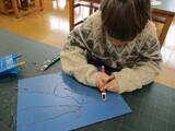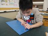 初めて使う彫刻刀に、どきどきしながらも、ケガをしないように使い方を確認し、慎重に線彫りをしました。