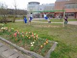 たくさんの子供たちが外で遊んでいます。